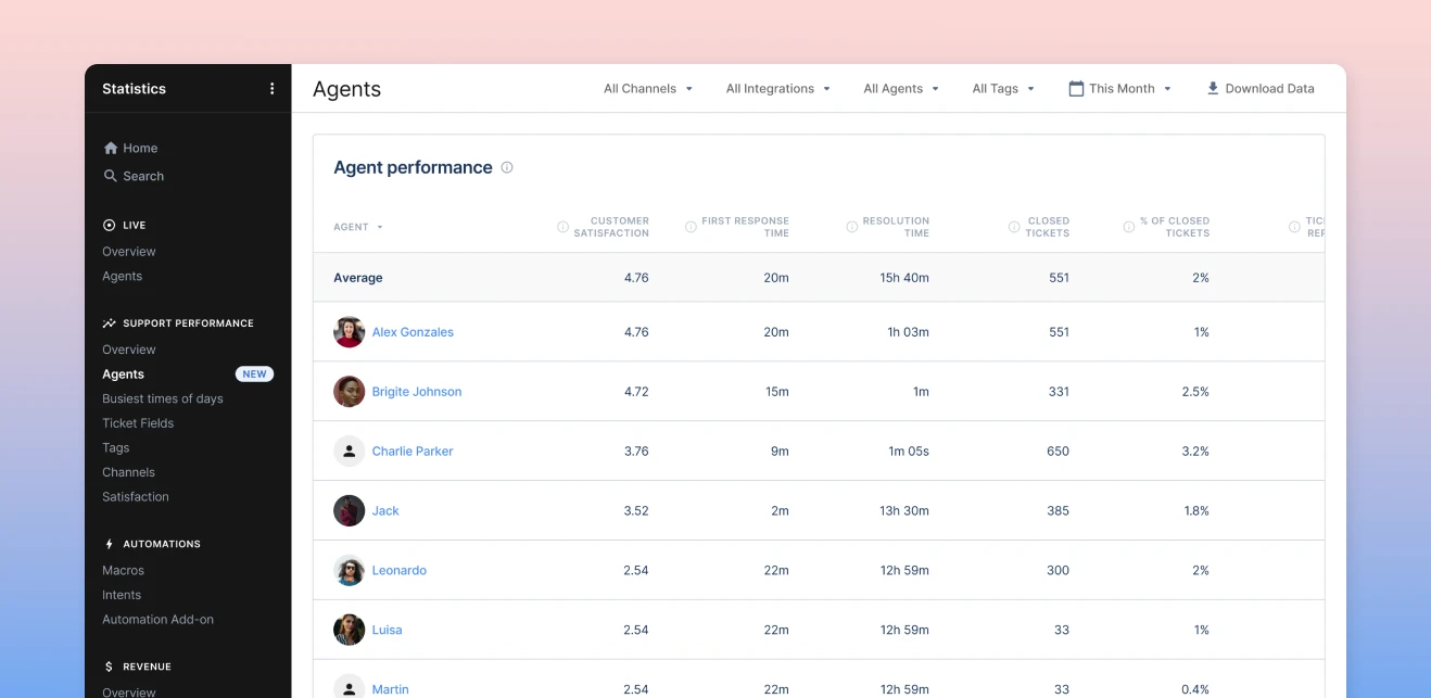 Each entry below follows the same structure: capabilities, trade-offs, and pricing that give you everything you need to make a confident shortlist decision without visiting a single vendor page. Let’s dive deeper into the top AI tools for customer support: